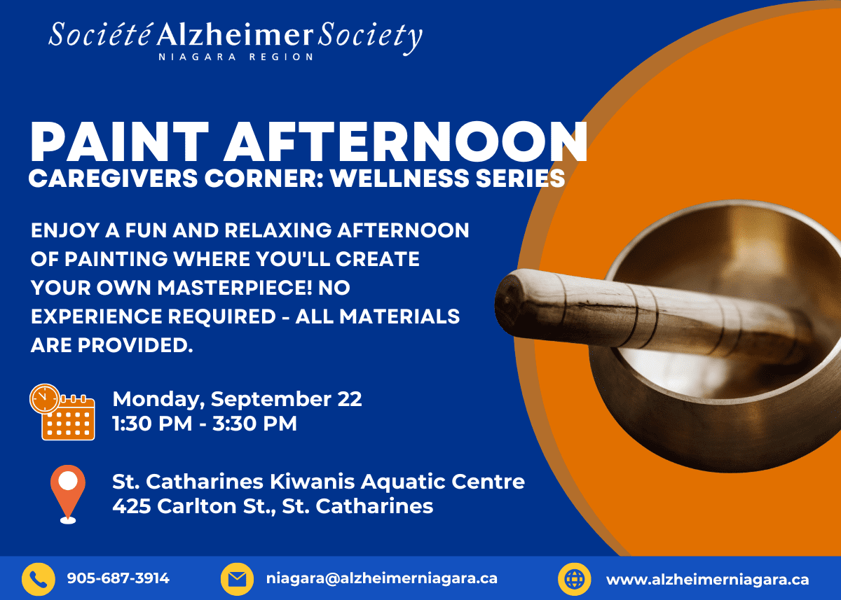 Register by calling their office at 905-687-3914 or visit them online at www.alzheimerniagara.ca/caregiverwellness.